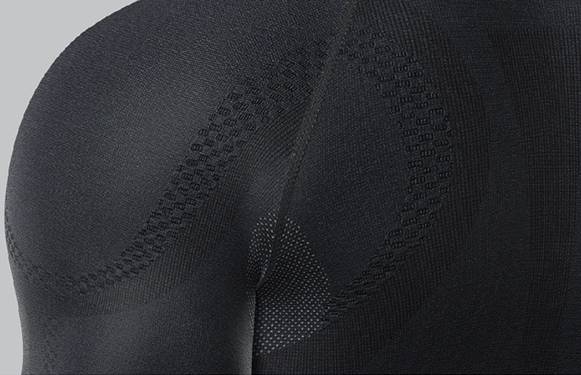 The 3D Weaved Channel has 10 micro pores per square centimeter (10/cm²). These micro pores remain in continual contact with the skin, regulating body temperature to maintain it within the optimum range for athletic performance.