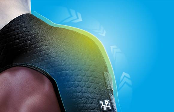 LP 538CA SHOULDER SUPPORT, engineered with COOLPRENE™ X technology, keeps the shoulder firmly supported while still allowing for a natural range of motion. Wrap-around compressive straps ensure custom fit and superior support.
