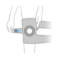 Wrap and secure shorter strap to the side of the knee.